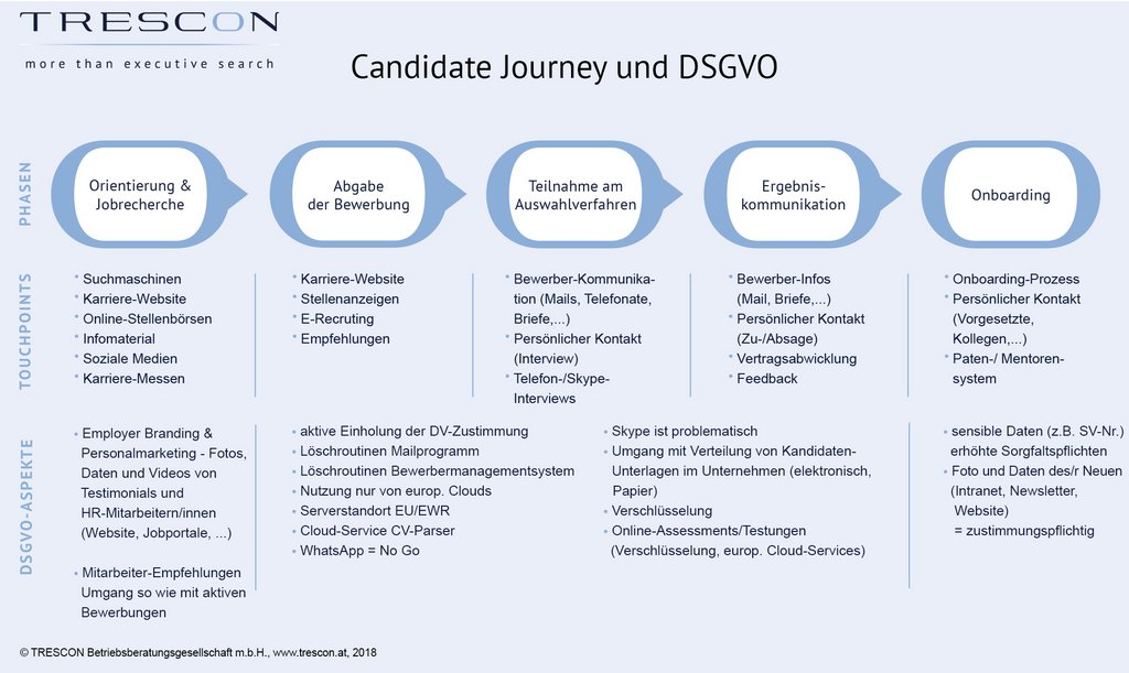Überlassen Sie die Candidate Journey Ihrer Bewerber/innen nicht dem Zufall und profitieren Sie von unserem Expertenwissen. Lernen Sie die Modelle von Candidate Journey und Candidate Experience kennen, TRESCON unterstützt Sie gerne bei der Entwicklung und Implementierung Ihres unternehmensspezifischen Konzepts. Mehr dazu finden Sie auch im Candidate Journey-Folder.